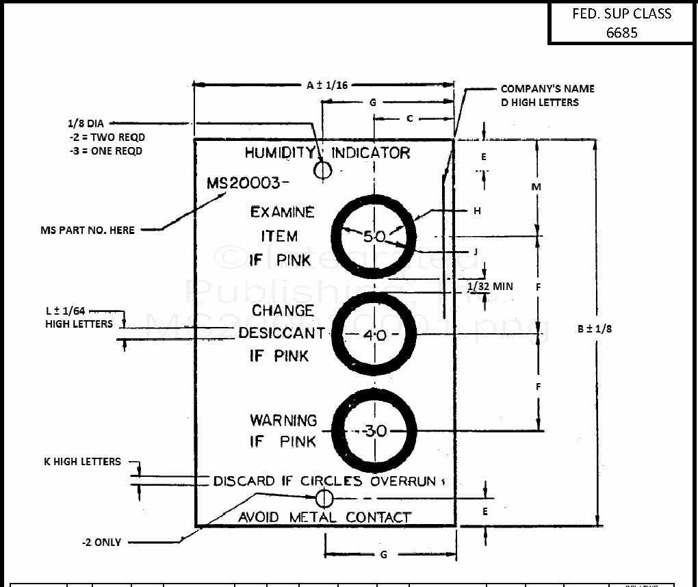 MS20003 Indicator, Humidity, Card, Three Spot, Impregnated Areas (Cobaltous Chloride)