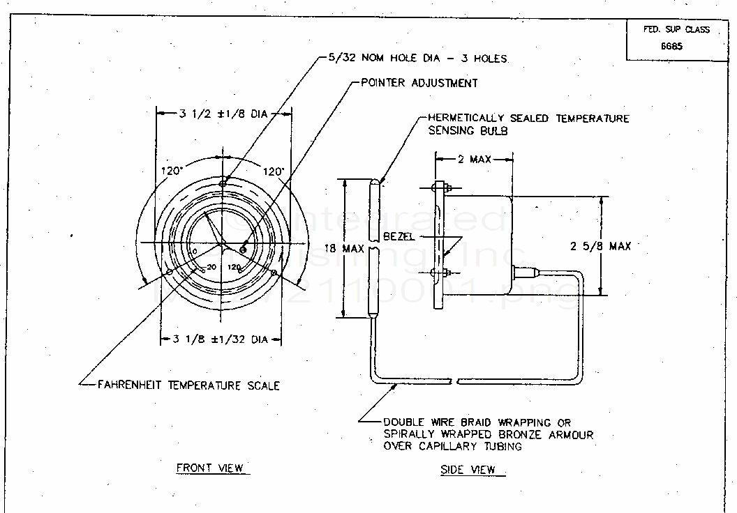 MS27211 Thermometer, Indicating, Capillary Tube And Bulb, 2-1/2 Inch Dial Size